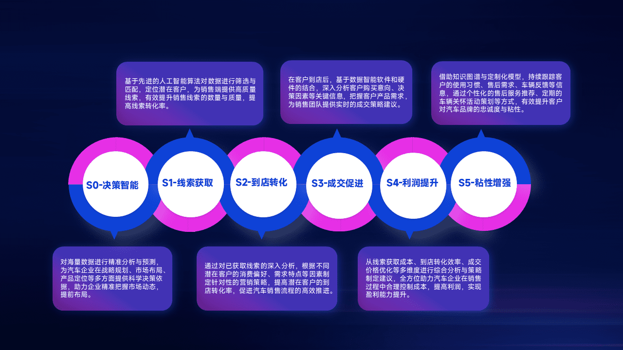 通过拓宽潜在客户来源、、、、优化线索分配并提高到店转化率,,以增强销售效率。。同时,,,,利用线索数据不断优化分析模型,,,,有效提升转化率,,,扩大营销影响力。。。